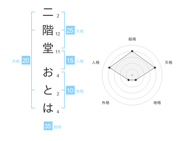 二階堂 おとはさんを姓名の画数から五運を鑑定