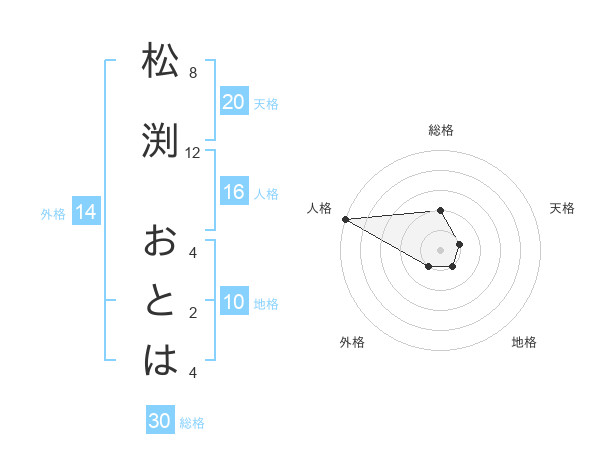 松渕 おとはさんの天格は20画の1点!