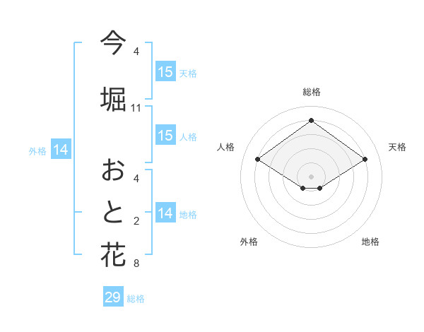 今堀 おと花さんの天格は15画の4点!