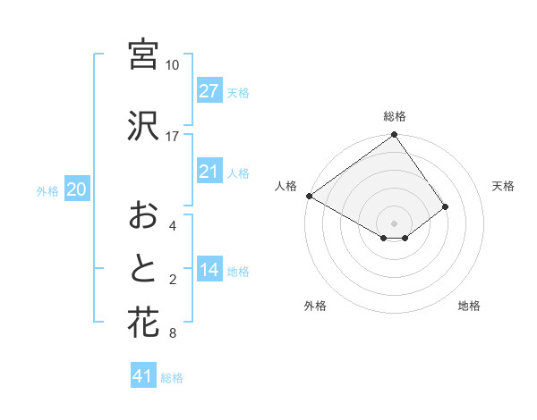 宮沢 おと花さんを姓名の画数から五運を鑑定