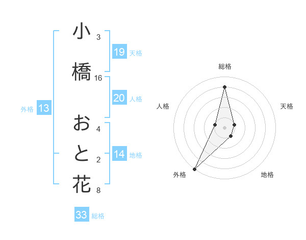 小橋 おと花さんを姓名の画数から五運を鑑定
