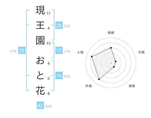 現王園 おと花さんを姓名の画数から五運を鑑定