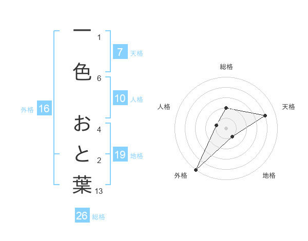 一色 おと葉さんを姓名の画数から五運を鑑定