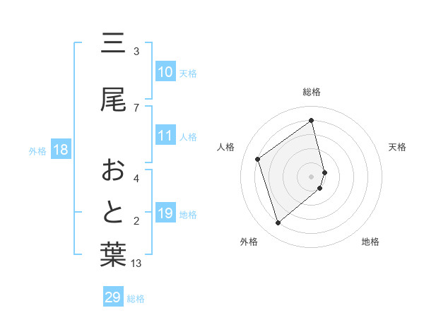 三尾 おと葉さんの総格は29画の4点!