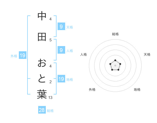 中田 おと葉さんの外格は19画の1点