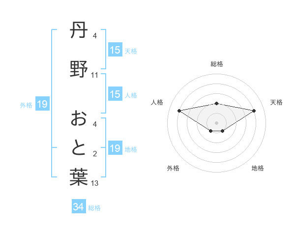 丹野 おと葉さんを姓名の画数から五運を鑑定