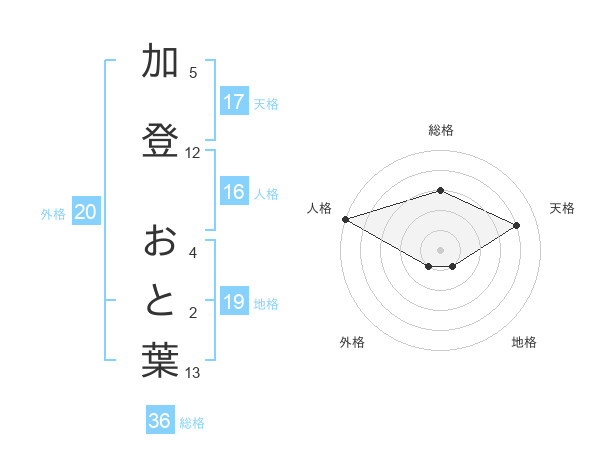 加登 おと葉さんを姓名の画数から五運を鑑定