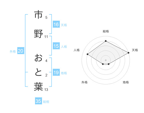 市野 おと葉さんを姓名の画数から五運を鑑定