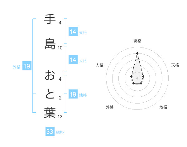 手島 おと葉さんの外格は19画の1点!