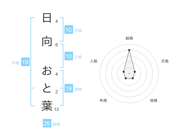 日向 おと葉さんの総格は29画の4点!