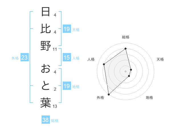 日比野 おと葉さんを姓名の画数から五運を鑑定