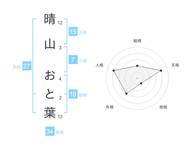 晴山 おと葉さんを姓名の画数から五運を鑑定