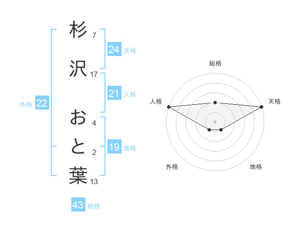 杉沢 おと葉さんの天格は24画の5点!