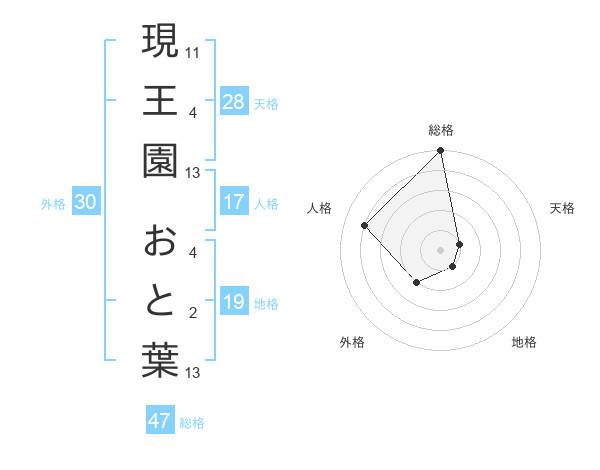 現王園 おと葉さんの総格は47画の5点!