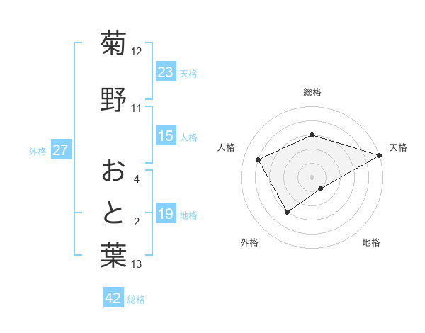 菊野 おと葉さんの外格は27画の3点!