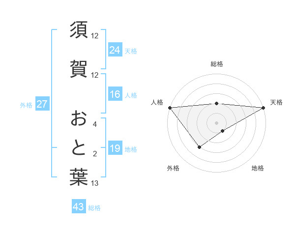 須賀 おと葉さんを姓名の画数から五運を鑑定