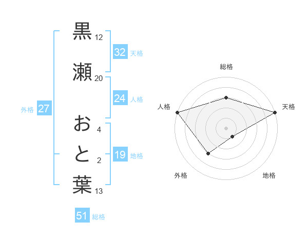 黒瀬 おと葉さんを姓名の画数から五運を鑑定
