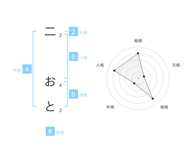 二 おとさんの総格は8画の4点!