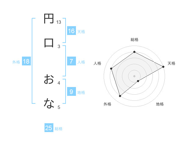 円口 おなさんの天格は16画の5点!