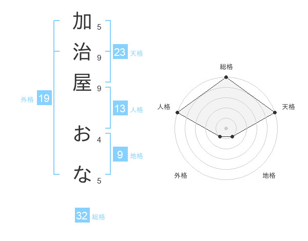 加治屋 おなさんを姓名の画数から五運を鑑定