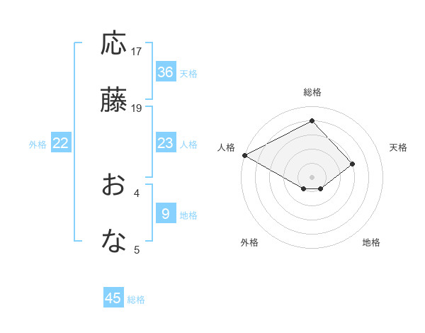応藤 おなさんの総格は45画の4点!