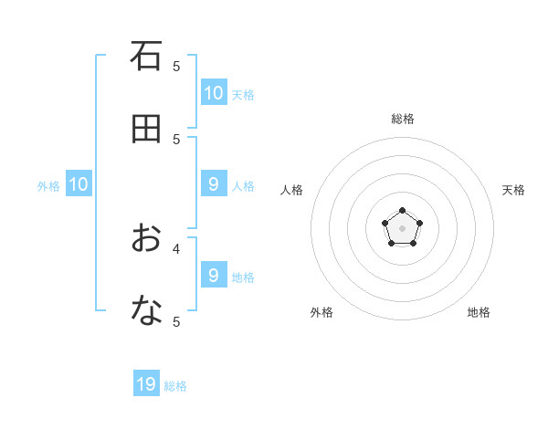 石田 おなさんの総格は19画の1点!