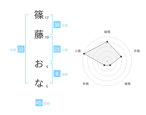 篠藤 おなさんの総格は45画の4点!