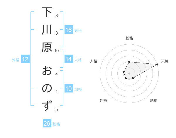 下川原 おのずさんを姓名の画数から五運を鑑定