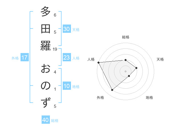 多田羅 おのずさんを姓名の画数から五運を鑑定