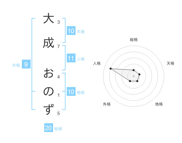 大成 おのずさんの総格は20画の1点!