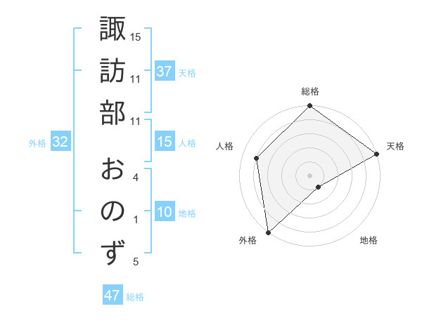 諏訪部 おのずさんの総格は47画の5点!