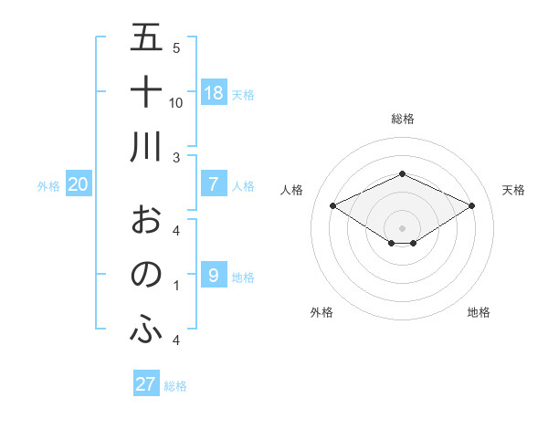五十川 おのふさんを姓名の画数から五運を鑑定