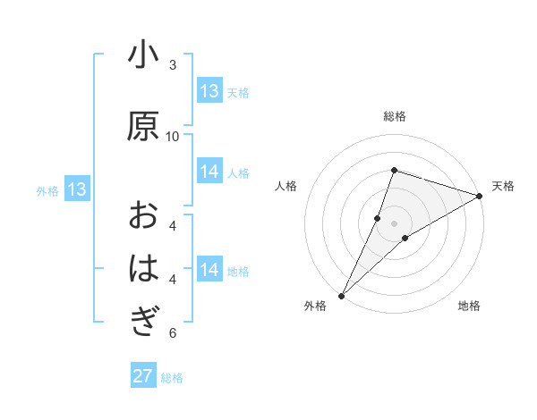 小原 おはぎさんを姓名の画数から五運を鑑定