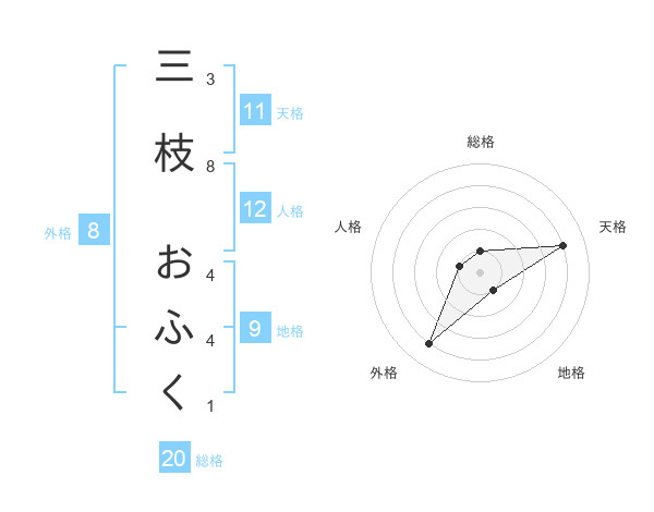 三枝 おふくさんを姓名の画数から五運を鑑定