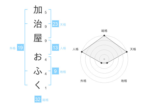 加治屋 おふくさんを姓名の画数から五運を鑑定