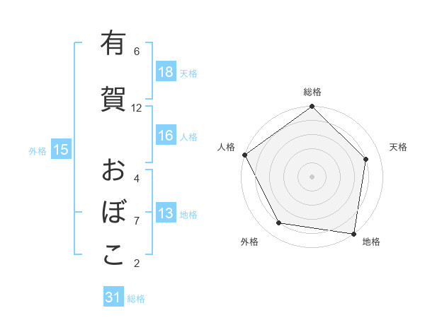 有賀 おぼこさんの地格は13画の5点!