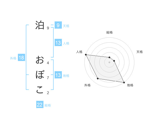 泊 おぼこさんの地格は13画の5点!