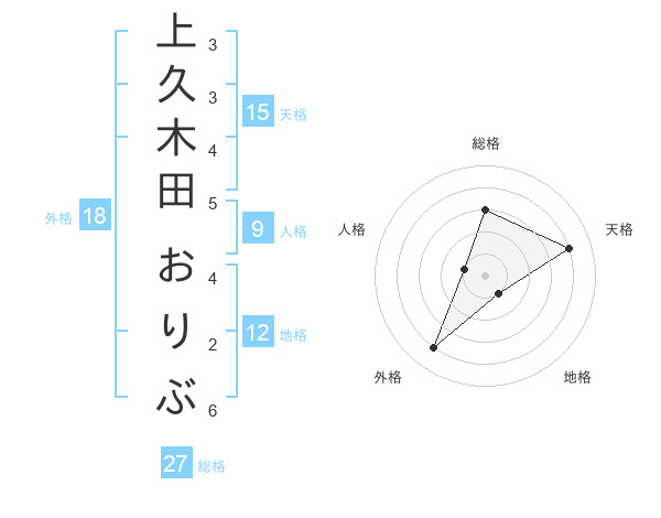 上久木田 おりぶさんを姓名の画数から五運を鑑定