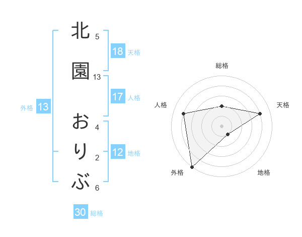 北園 おりぶさんを姓名の画数から五運を鑑定
