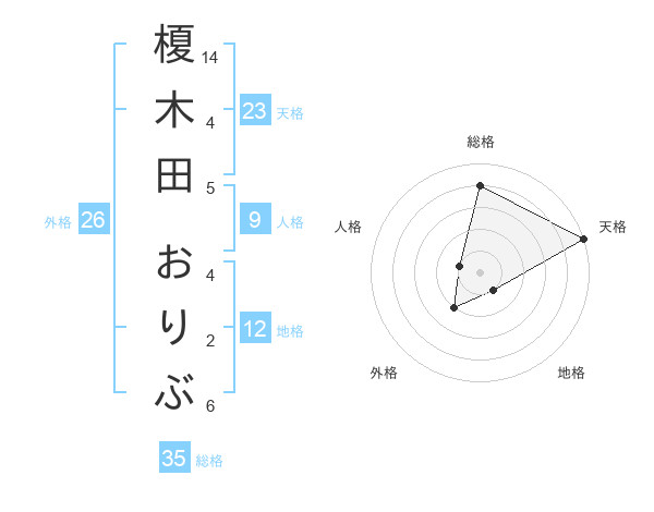 榎木田 おりぶさんを姓名の画数から五運を鑑定