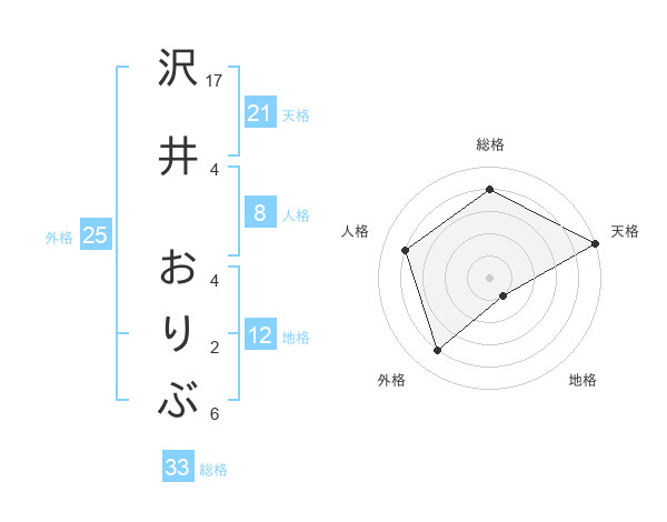 沢井 おりぶさんの天格は21画の5点!