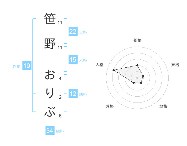 笹野 おりぶさんを姓名の画数から五運を鑑定
