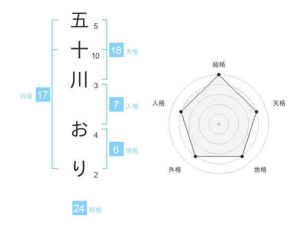 五十川 おりさんの総格は24画の5点!