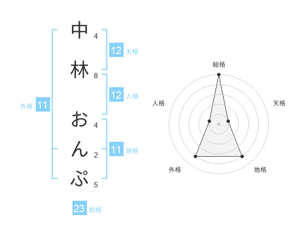 中林 おんぷさんの総格は23画の5点!