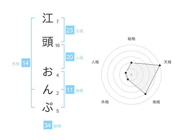 江頭 おんぷさんの天格は23画の5点!