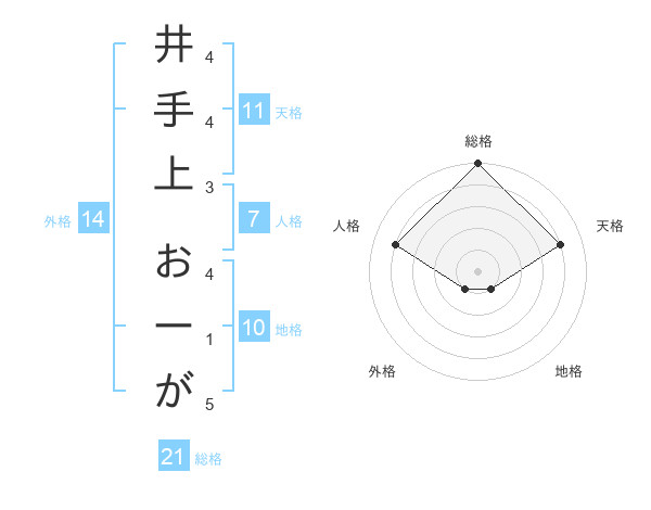 井手上 おーがさんを姓名の画数から五運を鑑定
