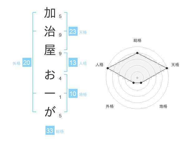 加治屋 おーがさんを姓名の画数から五運を鑑定