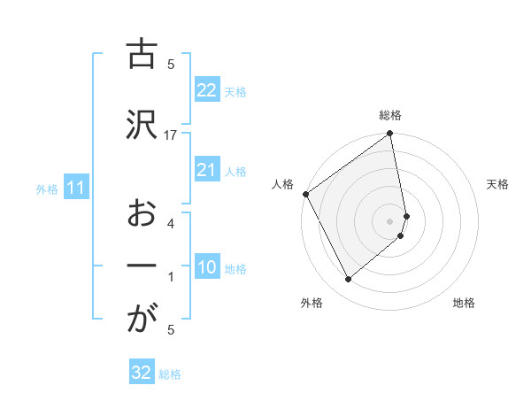 古沢 おーがさんを姓名の画数から五運を鑑定