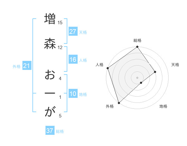 増森 おーがさんの総格は37画の5点!
