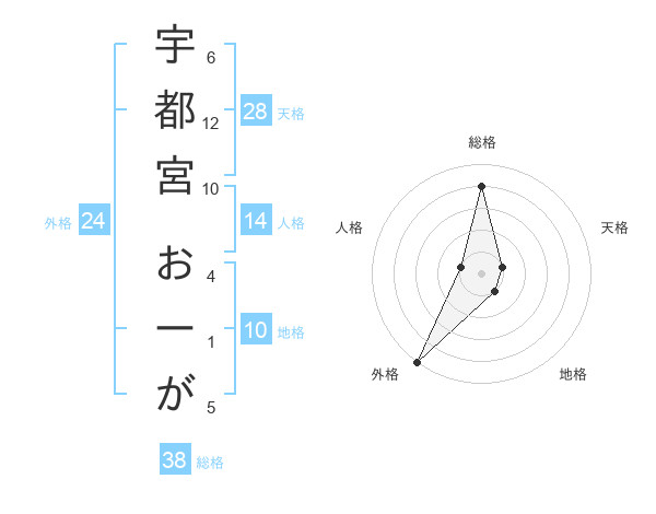 宇都宮 おーがさんの総格は38画の4点!